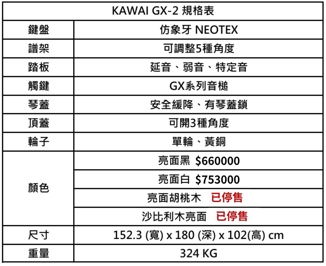 GX-2 結合經典與現代的設計,保留傳統的外觀風格,但在腕木和譜面台上運用了優美柔滑的曲線,讓整體看起來簡約又精緻,並且為了提升琴體韌性所加寬的前框厚度,成為 GX 系列平台鋼琴外觀上最大的特徵,在打開鋼琴的頂板時,整體更加閃耀動人,它不僅是一台鋼琴,更是家中不可或缺的藝術品。