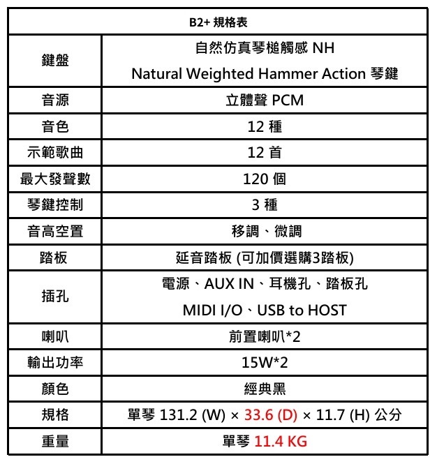 - 鍵盤手感超讚:配備自然配重琴槌鍵盤 (NH 鍵盤),低音鍵重、高音鍵輕,實現傳統鋼琴的逼真手感。