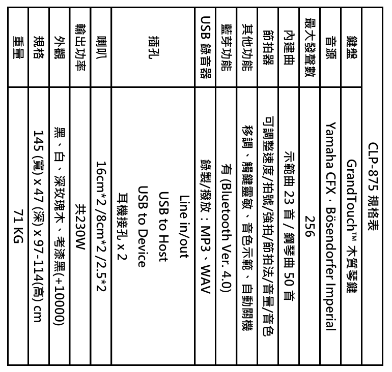 CLP-875 收錄了兩架世界級音樂會平台鋼琴的音色,讓你在家就能彈出專業級的感動。