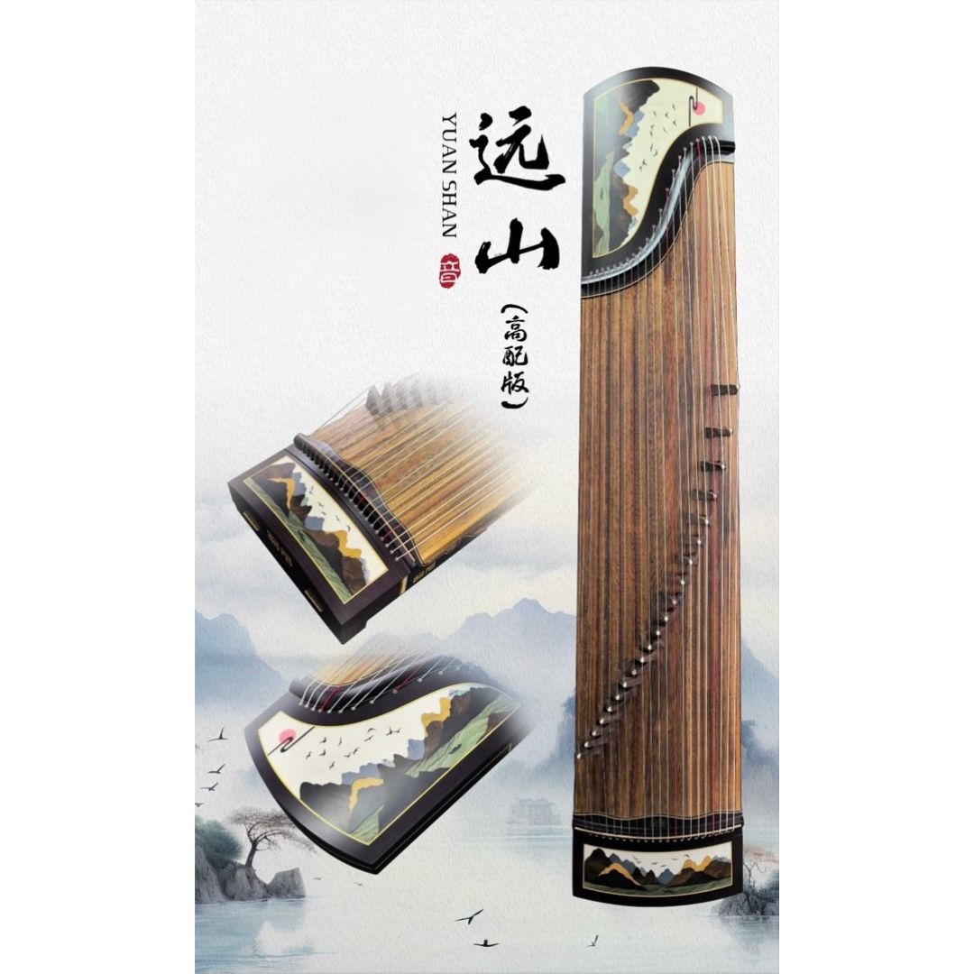 採用高密度的黑檀木貼面,色澤沉穩、紋理自然,象徵古箏本身如同遠山般寧靜深遠,外觀極具份量感,手感溫潤、歷久彌新。
