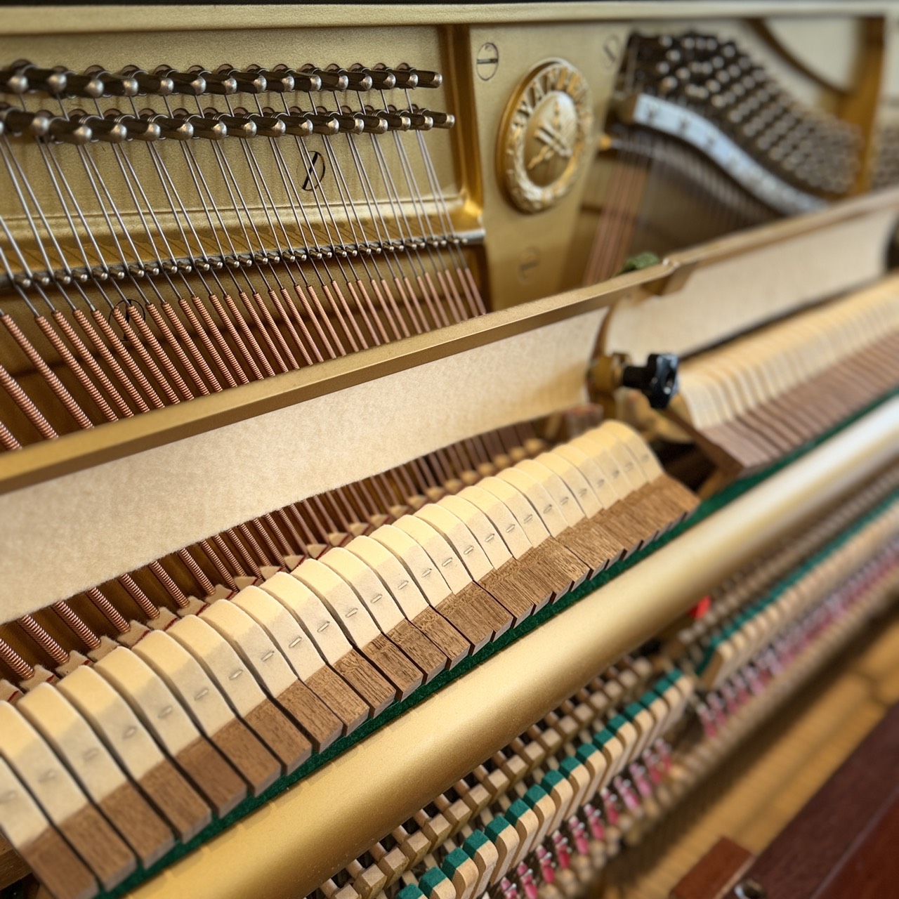 調音師親自校正每台鋼琴打擊槌的硬度,讓每台鋼琴兼具低音厚實、中音紮實、高音甜美的音色。
